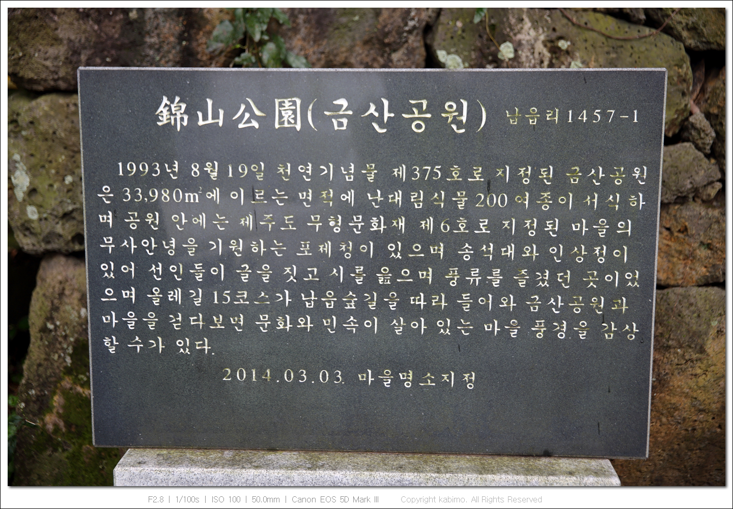 애월읍 납읍리에 있는 금산공원을 가봤습니다.