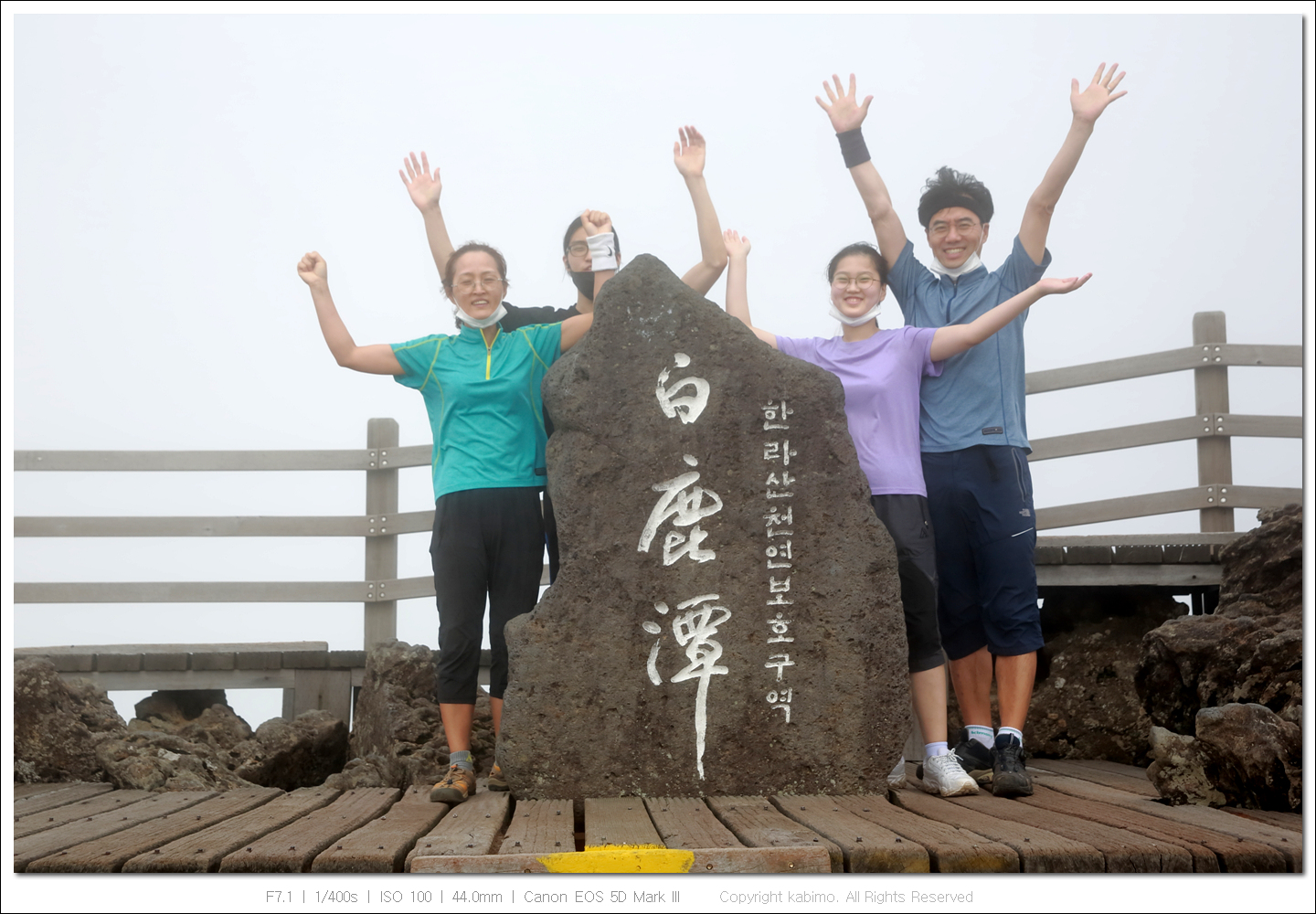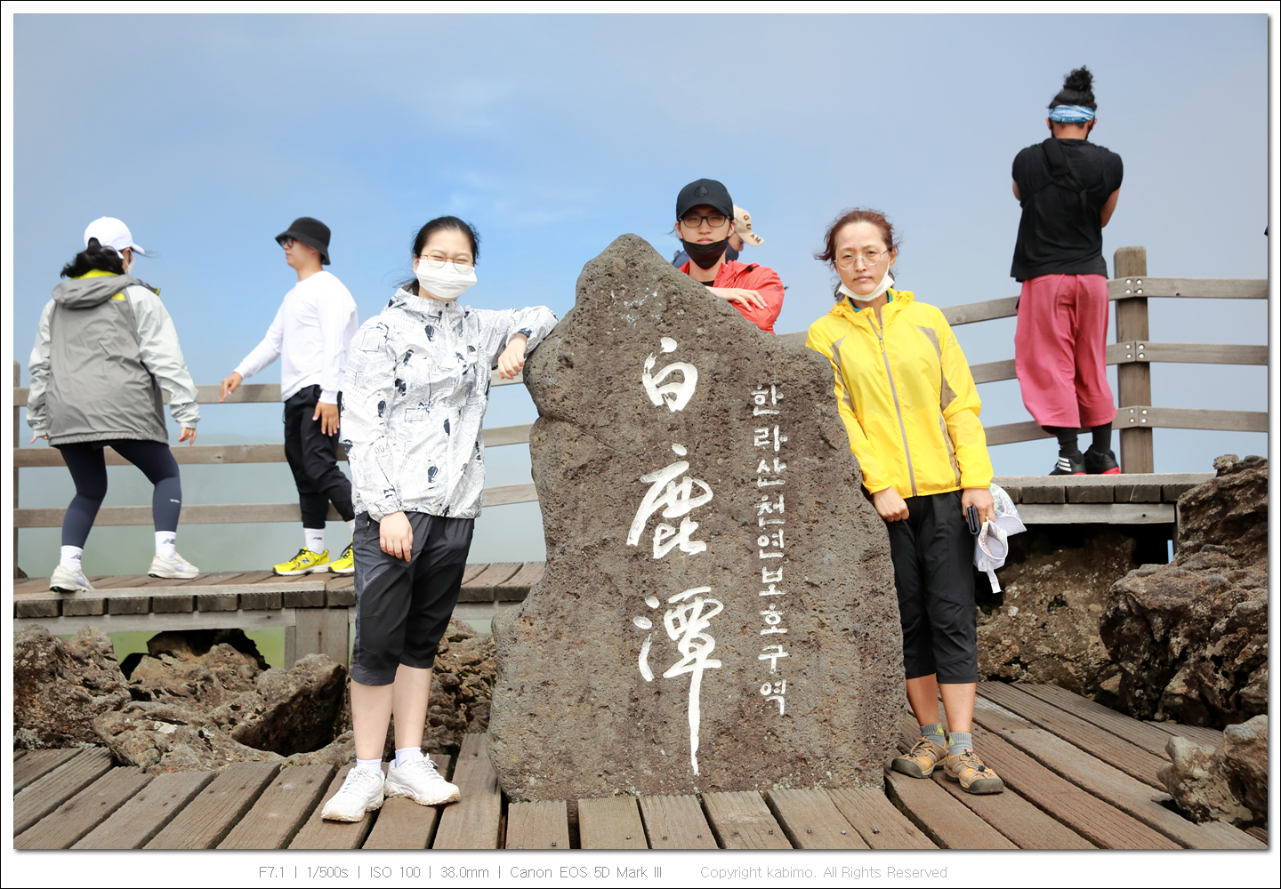 사람들이 모두 백록담 주변으로 달려가네요. 좀 전까지 안보였거든요