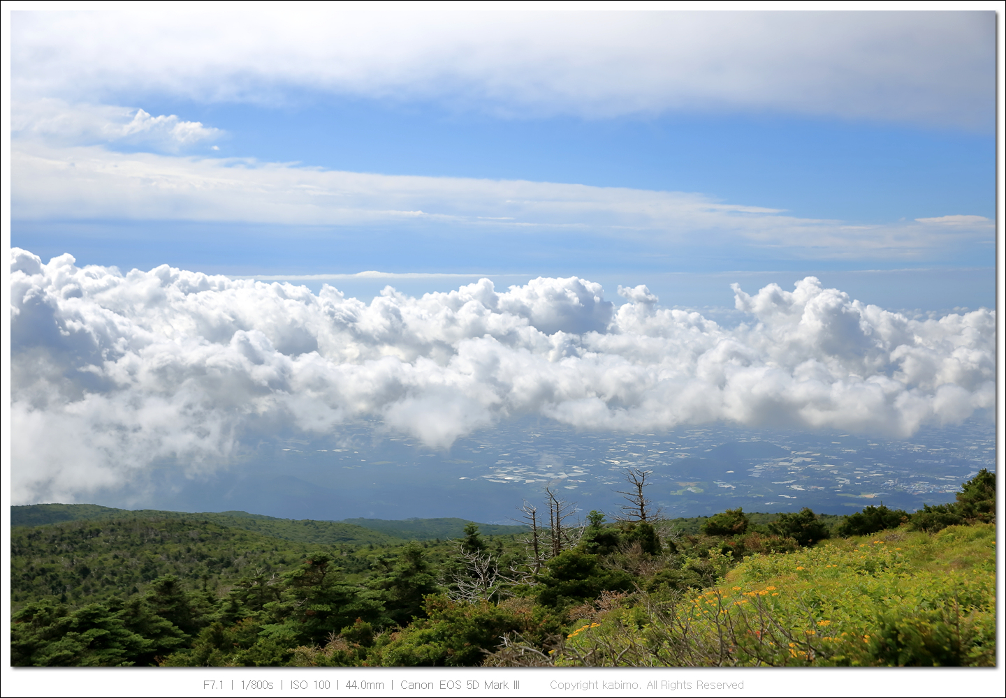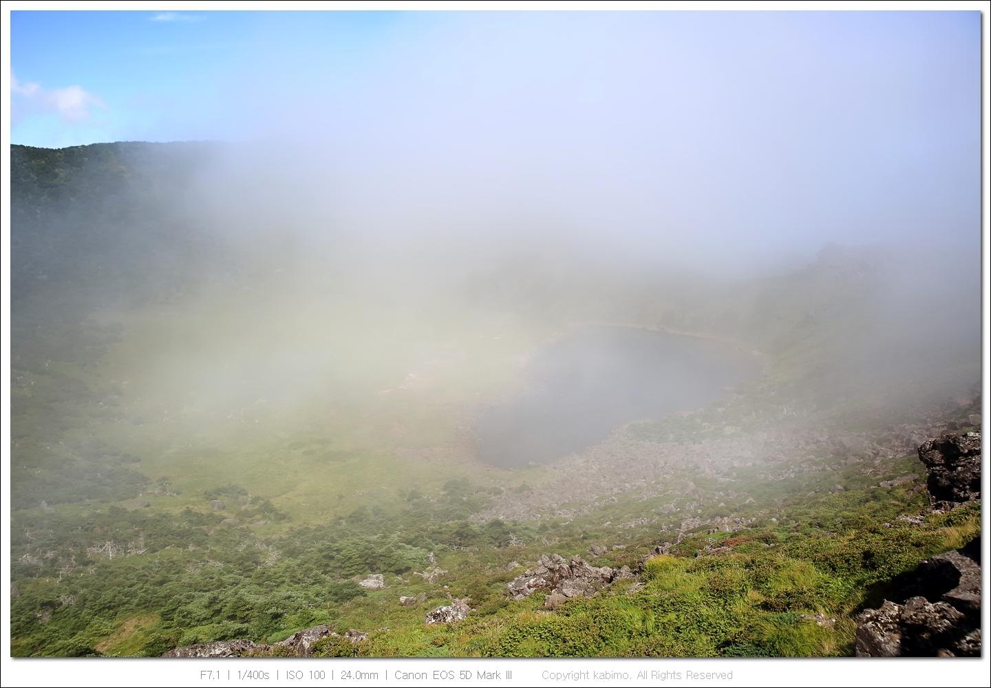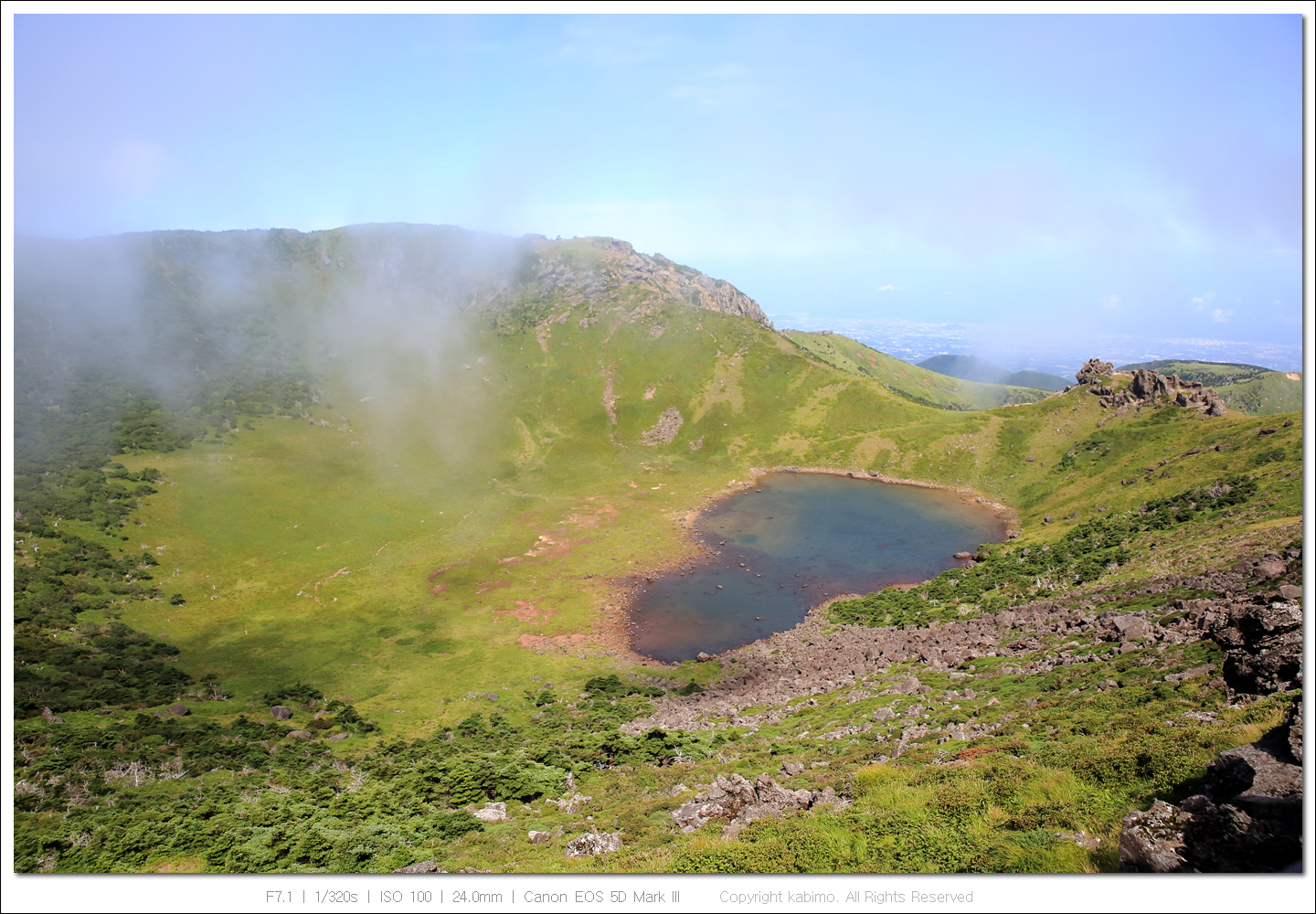 한라산 정상에서도 빛이 들어와 다시 몇 장 찍었습니다.